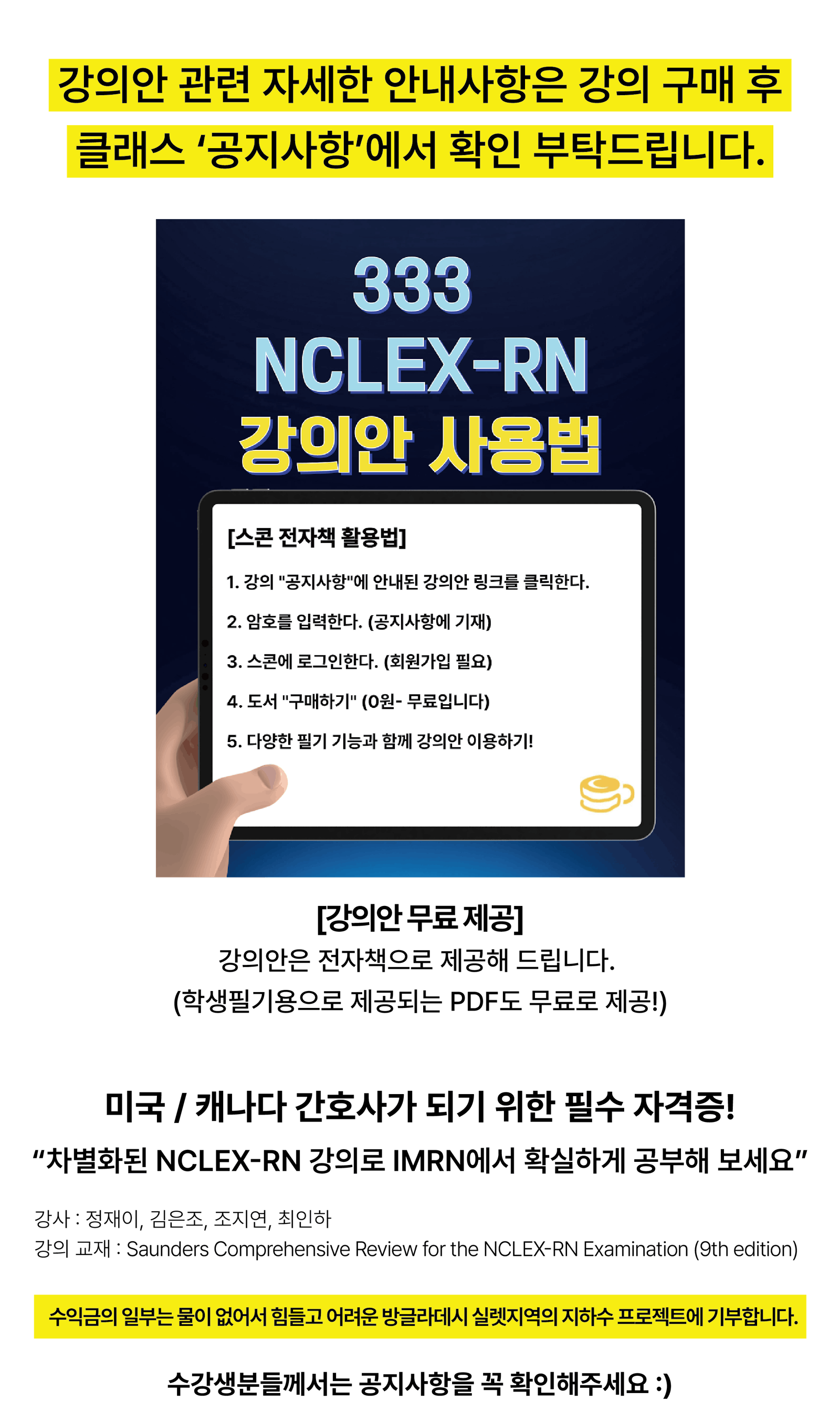 ✅ 위아너스 NCLEX-RN 강의 수강생 전용 특별 혜택 ❗❗❗